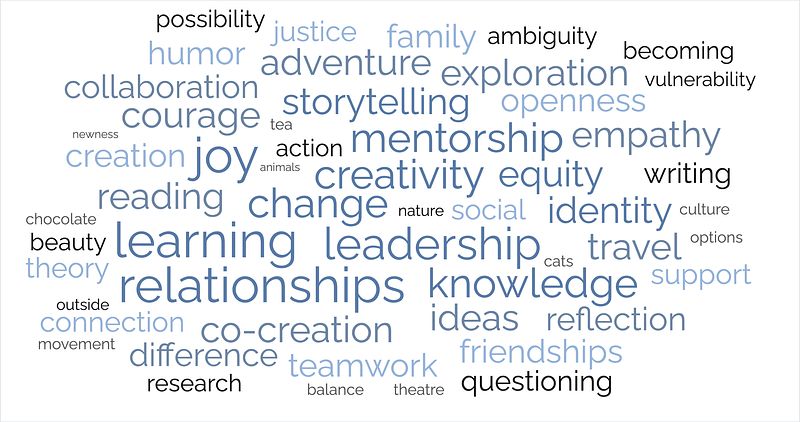 Finally, my learning, practice, and presence would be nothing without the relationships I've built with students, colleagues, and collaborators across a multitude of communities. I am deeply grateful for the words of support written by a group of these wonderful humans (see more in the People section).
